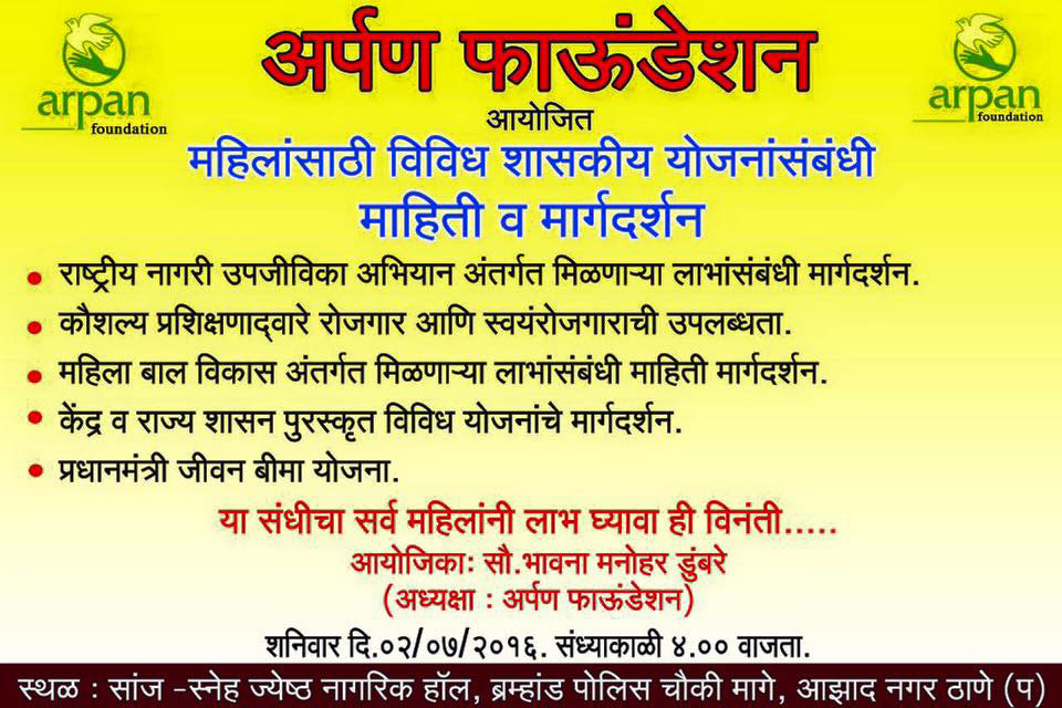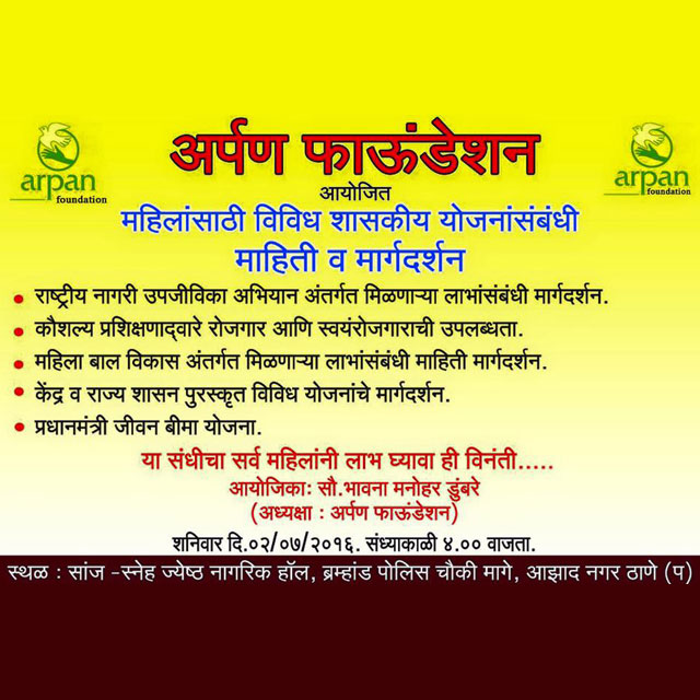 Arpan Foundation is a Thane based non-profit organisation, striving to help the underprivileged,troubled & weaker sections of the community to lead a dignified life in order to build a powerful & viable society. Established in the year 2012, Arpan is not just about contributing towards upliftment of the underprivileged but also associating ourselves with the cause & being an integral part of the solution. We are on a mission to build a society where each individual takes up the responsibility for the underprivileged & also encourages people to provide aid in uplifting the weaker sections through individual and collective actions. Our enthusiastic team,keen on bringing a meaningful difference to lives & spreading smiles, toils hard towards creating social awareness about several important issues of the society like educating the masses about the need of educating girls, the importance of giving equal opportunities to men and women, etc just to name a few. We aim to build a healthy environment where every human being can flourish peacefully their well being is taken care of and also dream of a society which strives to help each other & enhance lives of each other.